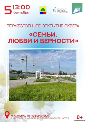 Сквер «Семьи, любви и верности» открыли сегодня в Агаповке